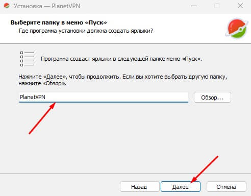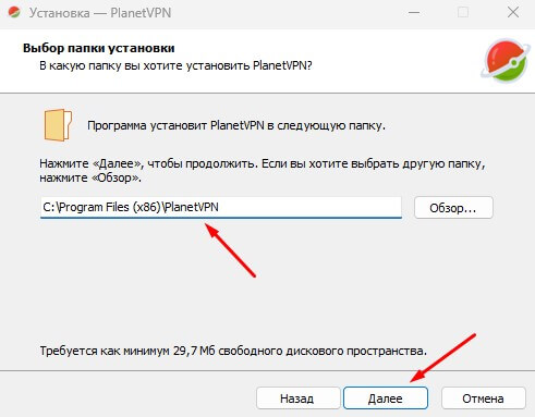Пропишите путь для установки программного обеспечения и перейдите к следующему шагу: