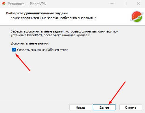 Оставьте галочку, если вам нужен ярлык программы на рабочем столе: