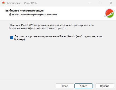По желанию вы можете установить дополнительное расширение Planet Search: