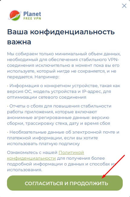 При первоначальном запуске программного обеспечения необходимо подтвердить согласие с установленными правилами использования продукта: