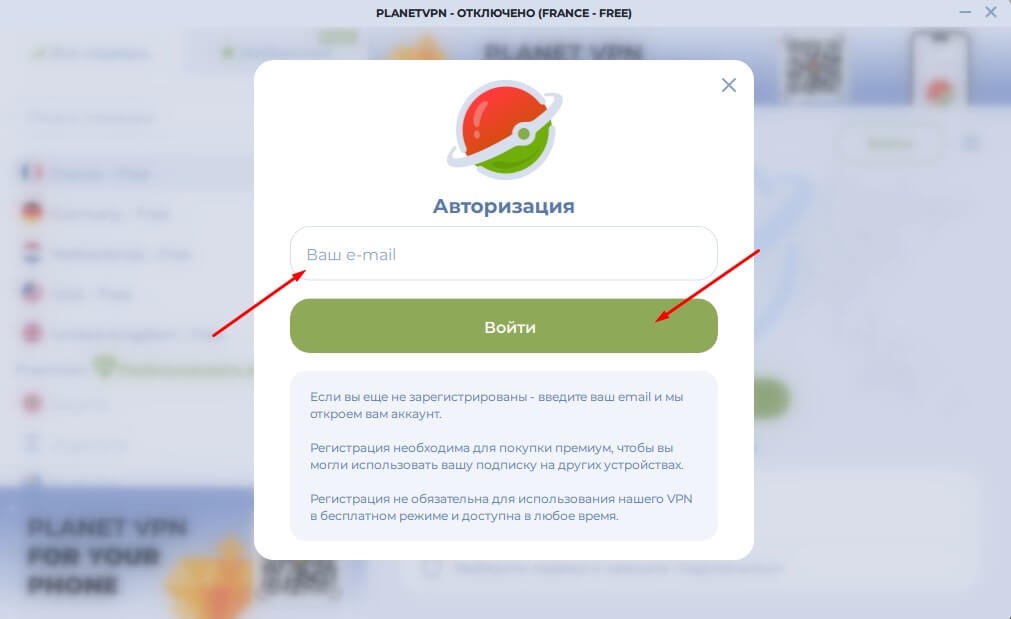 Чтобы зарегистрироваться или авторизоваться, нажмите на кнопку «Войти» и введите адрес электронной почты: