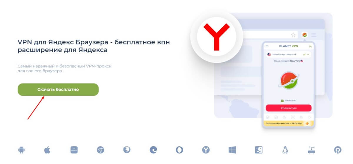 Planet VPN позволяет получить анонимное и безопасное высокоскоростное соединение без ведения логов и отслеживания пользовательской информации во втором по популярности в России интернет-обозревателе – Яндекс Браузере. Вы можете бесплатно установить расширение из интернет-магазина Chrome.